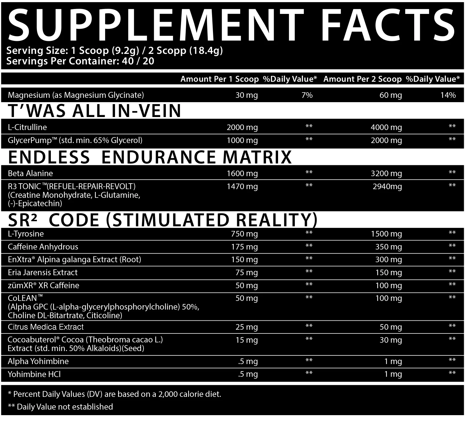 You'll have Beta-Alanine, Creatine, Fermented Kyowa Glutamine, and Epicatechin tucked in your arsenal for endless endurance. We've included a clinical dose of BOTH pure L-Citrulline AND GlycerPump™ (patented glycerol) for the maxed-out muscle pump that you've come to expect from the DVST8 series too.